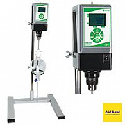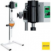 Комплект поставки: привод, штатив, металлический зажим - 2 шт., фторопластовая турбинная мешалка, фторопластовый переход, кольцо-держатель для воронки, воронка делительная круглая объемом - 1 л.