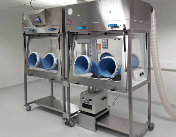 Изоляторы для стерильных работ представляют собой защитные барьерные изоляторы. Предназначены для проведения асептических процессов, работ с клеточными культурами, изготовления лекарственных средств (химиотерапия/полное парентеральное питание) и т.п. Изоляторы соответствуют классу 1 по ИСО 10648-2, обеспечивают высокий уровень защиты оператора с помощью отдельных передаточных шлюзов; выполнены с возможностью работать как при положительном, так и при отрицательном давлении по отношению к окружающей среде.
