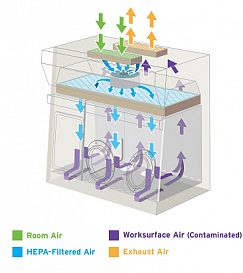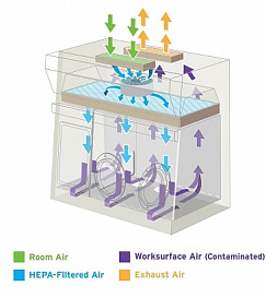 • система HEPA фильтрации в камере (H14) и в передаточном шлюзе (H13), эффективность > 99,99% для частиц > 0,3 мкм;