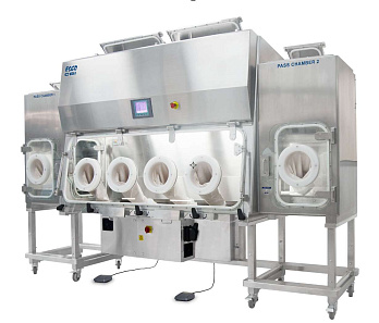 Изоляторы для стерильных работ (асептические изоляторы) представляют собой герметичную камеру, оборудованную передаточными устройствами и приспособлениями для манипуляций, не нарушающих герметичности. Изоляторы для стерильных работ обеспечивают защиту образца, оператора и окружающей среды. Внутри рабочей камеры изолятора давление отличается от атмосферного давления, что принципиально отличает их от боксов биологической безопасности III класса. Изоляторы для стерильных работ обеспечивают физический барьер и могут быть расположены как в чистых зонах, так и в нестерильных помещениях. Основное преимущество изоляторов для стерильных работ – создание стерильных условий для работы без наличия специальных помещений.