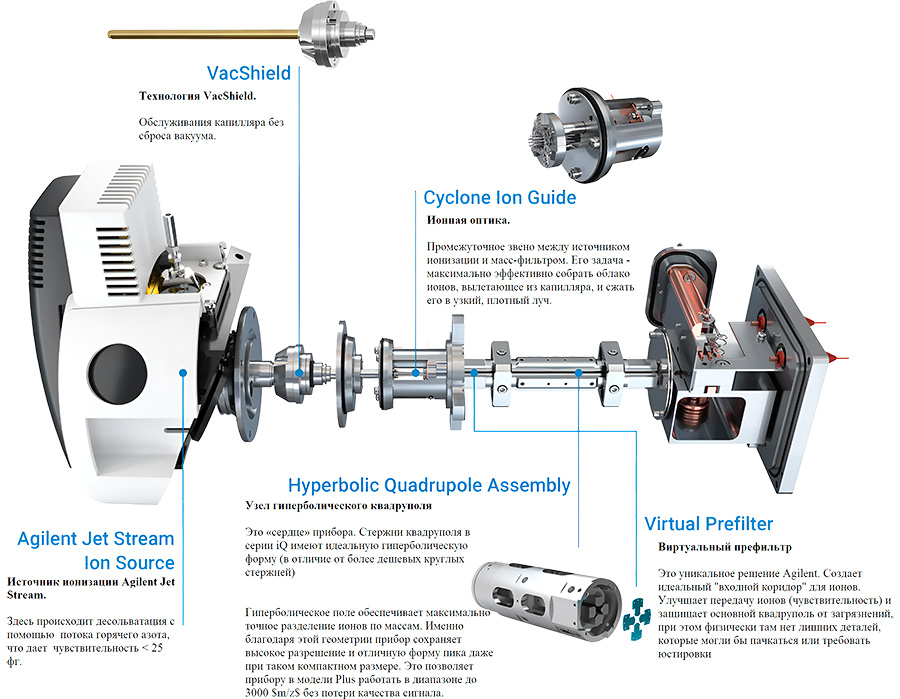 • Ультра-чувствительность с источником Jet Stream (AJS): использование запатентованной технологии термического градиента (сжатый поток азота) обеспечивает максимальную эффективность ионизации. Это позволяет достигать предела обнаружения IDL < 25 фг, что необходимо для поиска ультра-следовых количеств веществ в сложных и «грязных» матрицах.