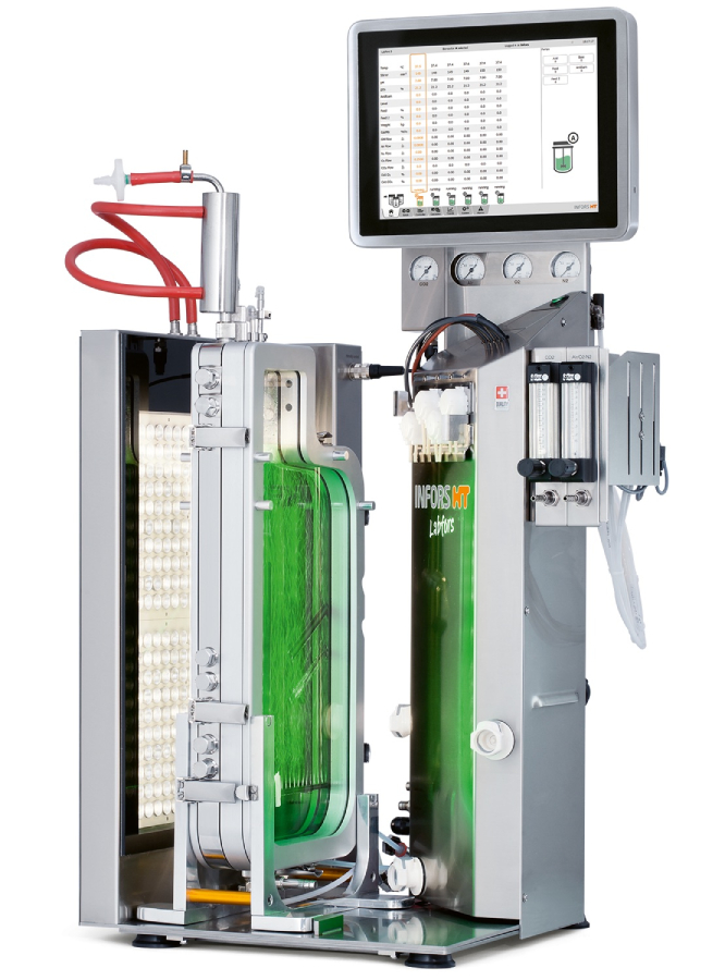 • компьютеризированное управление освещением, температурой, перемешиванием, уровнем pH и дозированием жидкости или газа;
