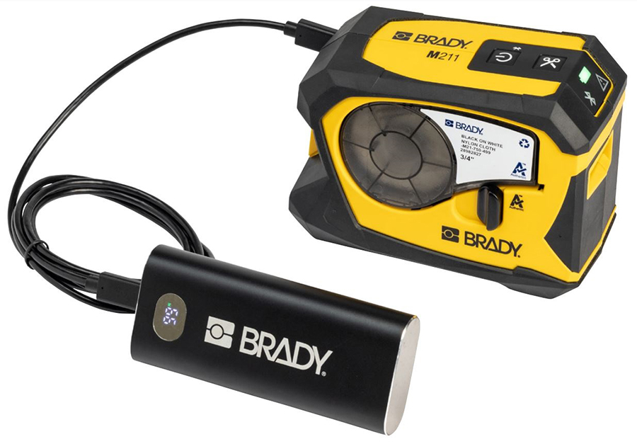 Хит продаж — портативный принтер этикеток, Brady M211 — управление через мобильное приложение, беспроводное подключение к смартфону, печатает до 300 этикеток на одной зарядке аккумуляторной батареи. Вес устройства составляет всего 0,5 кг, оснащено встроенным автоматическим резаком.