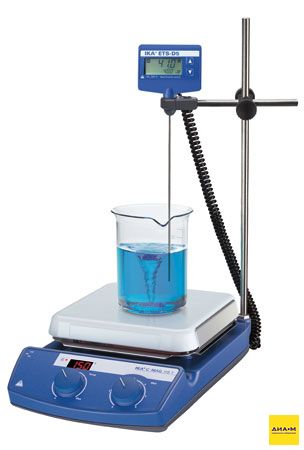 Магнитная мешалка с нагревом RT 5 имеет плавную регулировку температуры нагрева до 120 °C, скорость остается постоянной даже при изменении нагрузки, настраиваемый реверсивный режим работы, а также удобную сенсорную клавиатуру. Пригодна для непрерывной работы.