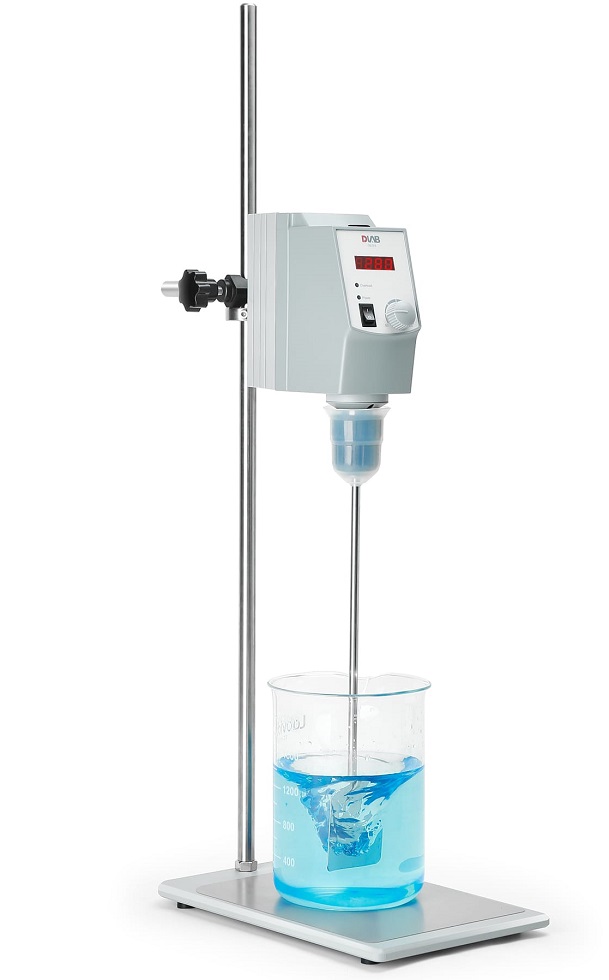 Мешалка верхнеприводная лабораторная — устройство для равномерного механического перемешивания жидкостей и компонентов различной вязкости внутри какой-либо емкости; применяются для перемешивания, гомогенизации текучих и вязких жидкостей, размешивания твердых частиц в жидкостях, приготовления суспензий, гелей, эмульсий, а также для внедрения газов. Мешалка лабораторная имеет следующий принцип работы — передача механической энергии от верхнего электропривода к перемешиваемой среде при определенной скорости вращения вала устройства. В зависимости от привода разделяются на механические и электронные. В механических частоту вращения регулирует бесступенчатая трансмиссия. Высокий крутящий момент можно получить уже на низких оборотах, меняя передаточное число привода. В электронных моделях частоту вращения регулирует микропроцессор. Это обеспечивает постоянный диапазон частот даже при изменении вязкости субстанции, с сохранением постоянной скорости.