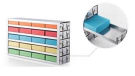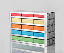Криобокс Midea на 100 или 81 пробирку объемом 2 мл, выполнен из пропилена, размером — 133×133×53 мм, расположение на 100 пробирок : 10×10 или на 81 пробирку расположением пробирок: 9×9.
