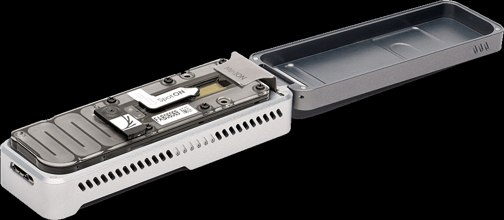 MinION подключается к USB-порту 3.0 ПК или ноутбука для вывода и анализа информации, полученной в процессе секвенирования. Никакое дополнительное компьютерное или лабораторное оборудование не требуется.