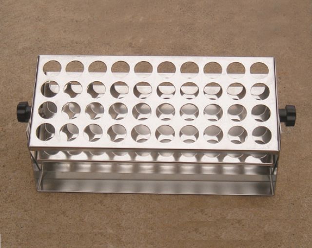 Размер штатива 30×11×11 см. В комплект штативов для пробирок P8010 из нержавеющей стали входит один держатель штатива и один штатив из нержавеющей стали. Благодаря регулирующим ручкам пробирки могут быть произвольно зафиксированы под углом от 0 до 90 градусов.