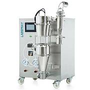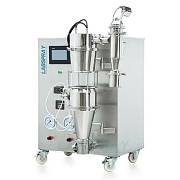 Распылительная сушилка SD-6000S имеет производительность 1500 мл/ч для H₂O, с размером частиц 1-25 мкм. ЖК-дисплей с сенсорным экраном, отображающий параметры: температура воздуха на входе, температура воздуха на выходе, скорость перистальтического насоса, объем воздуха, частота прохождения иглы.