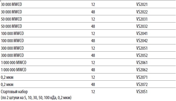 • порог отсечки по молекулярному весу (MWCO) – от 3 000 до 1 000 000.