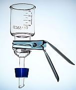 Основание для держателя фильтров с диаметром 47 мм из боросиликатного стекла с тефлоновым покрытием и фритованной стеклянной подложкой.