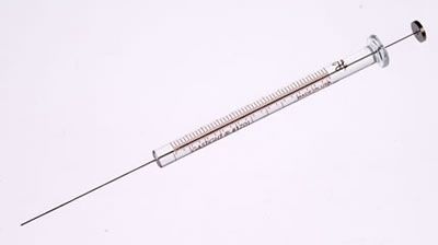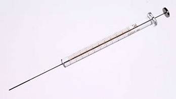 Микрошприц серии 1700 для газов и жидкостей с тефлоновым наконечником поршня. Объём 10 мкл. Игла постоянная калибра 26s, 51 мм длиной, с тупым кончиком.