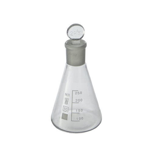 Колба Эрленмейера, 250 мл, стекло, пробка стеклянная со шлифом, 1 шт., Россия
