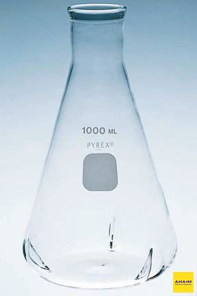 Колба Эрленмейера 1000 мл, стекло, с отбойниками, с усиленным ободом, Pyrex (Corning)