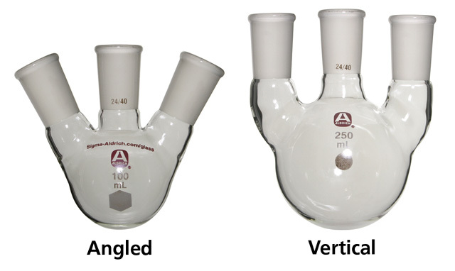 Колба трехгорлая, круглодонная, 25 мл, нестерильная, со скошенными боковыми горловинами