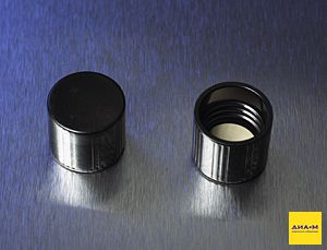 • винтовая крышка из полипропилена, прокладка - Tefzel (ЭТФЭ), уплотнительное кольцо - Viton фторэластомер.