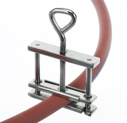 Зажим изготовлен из никелированной латуни, с винтовой защелкой, упрочненный для трубок и шлангов. Обеспечивает непроницаемость (герметичность) для газов и жидкостей, путем пережатия канала трубок.
