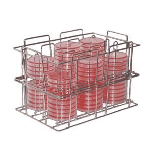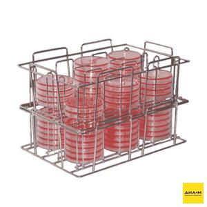 Штативы для чашек Петри предназначены для переноски, транспортировки и компактного хранения чашек Петри от 10 до 100 штук диаметром от 35 до 150 мм. В данном разделе представлены штативы для 36 чашек диаметром от 50 до 150 мм. Штативы могут быть изготовлены из полипропилена или нержавеющей стали. Полипропилен обладает хорошей химической устойчивостью, может обрабатываться дезинфицирующими растворами, однако, не устойчив к растворителям. Штативы из нержавеющей стали являются жаростойкими, прочными и долговечными. Штативы используются для переноски из термостата на рабочий стол после инкубации, также для инкубации в самом термостате, для компактного хранения (возможна установка друг на друга) при большом объёме.