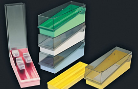 Планшет (коробка, пенал) для хранения препаратов на предметных стеклах, на 100 стекол, подложка из пробки, 5 цветов, АБС-пластик, 30 шт/уп (аналоги: арт. SGH014-C, Китай; арт. 19277.1, арт. 19277.B, Планшет (коробка, пенал) для хранения препаратов на предметных стеклах, на 50 стекол, белый, ПЭ (аналог арт. 41-6100, Biologix) Deltalab) Biologix, Китай