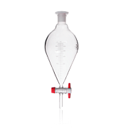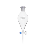 Воронка делительная, грушевидная, шлиф 29/32, запорный кран из PTFE, пробка ПП, Glassco, Индия
