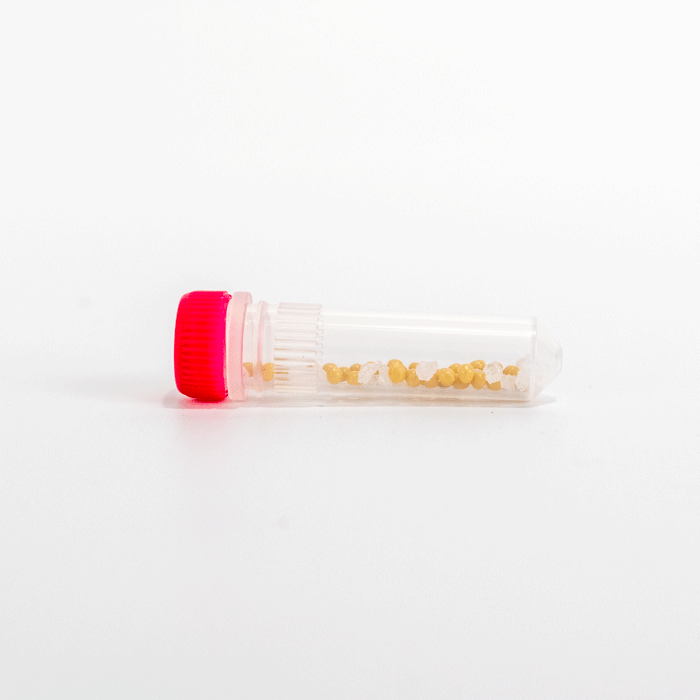 Лизирующая матрица J: 2 мм желтые циркониевые шарики и гранулы из оксида алюминия 1,6 мм; розовая крышка.