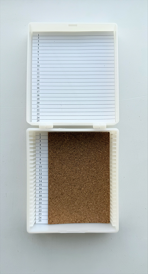Для безопасного хранение и транспортировки микропрепаратов мы предлагаем планшеты с крышкой или без для предметных стекол, выполненные из прочного АБС пластика, полистирола или картона. Для большого количества образцов предлагает специализированный шкаф для хранения и архивирования, рассчитанный до 2520 стекол.