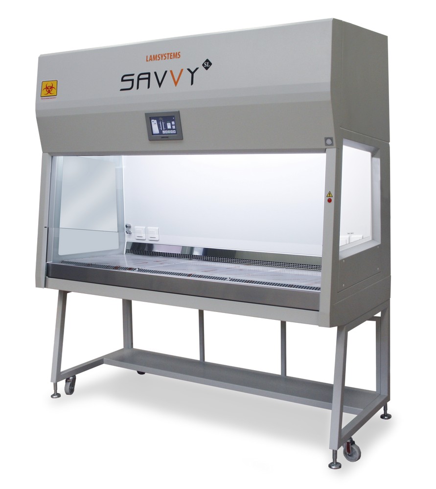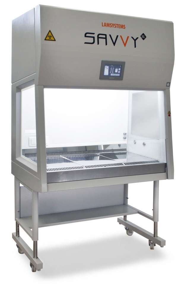 Бокс (шкаф) биологической безопасности класс II (тип A2), БМБ-II-"Ламинар-С"-0,9 SAVVY SL обеспечивает защиту оператора при работе с патогенными агентами и микроорганизмами, передающимися воздушно-капельным путем, защиту окружающей среды, а также защищает продукт от внешнего загрязнения или перекрёстной контаминации. Фронтальное стекло с электроприводом. Пульт управления боксом — сенсорный. Характеристики