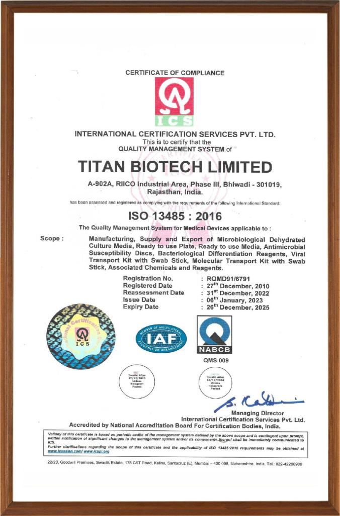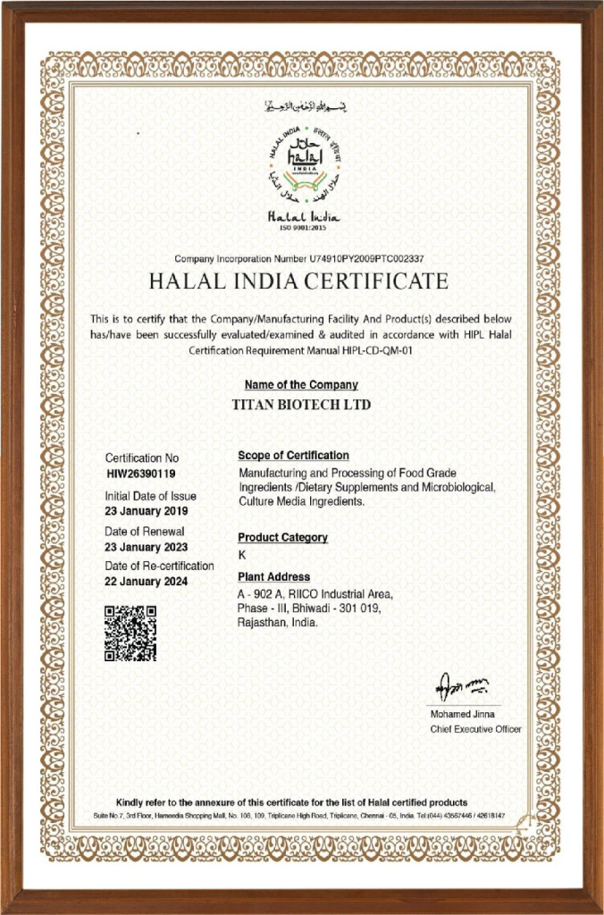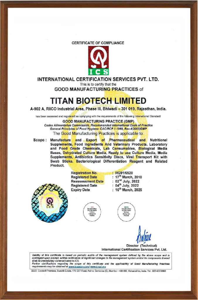 Компания Titan Biotech Limited, основанная в 1995 году, является одним из ведущих производителей и экспортеров биологических продуктов, используемых в области фармацевтики, нутрицевтики, продуктов питания и напитков, биотехнологии и ферментации, косметики, ветеринарии и кормов для животных, сельского хозяйства, питательных сред для микробиологии и культур тканей растений и т.д.
